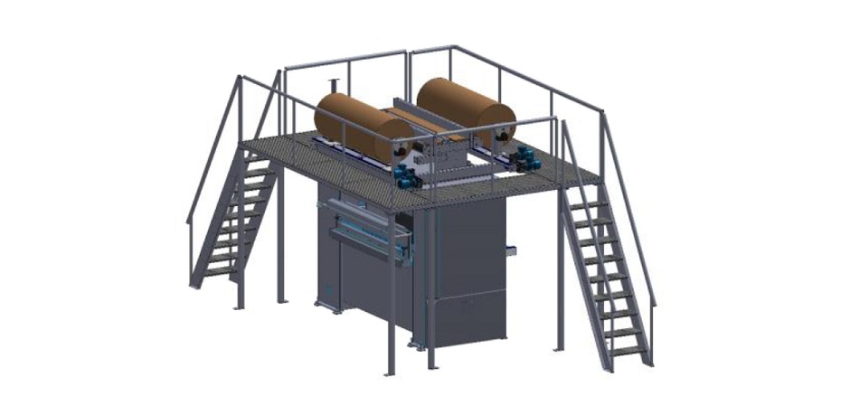 Лестницы-сходни и платформа, а также кран используются для удобной загрузки рулонов.