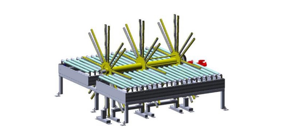 Для ровной подачи заготовок используются конвейеры в отклоняющими роликами и направляющей линейкой.