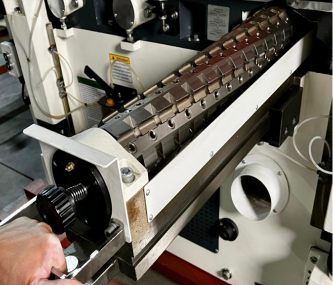 Регулировка на толщину детали производится за счет электродвигателя с панели управления по измерительной шкале.