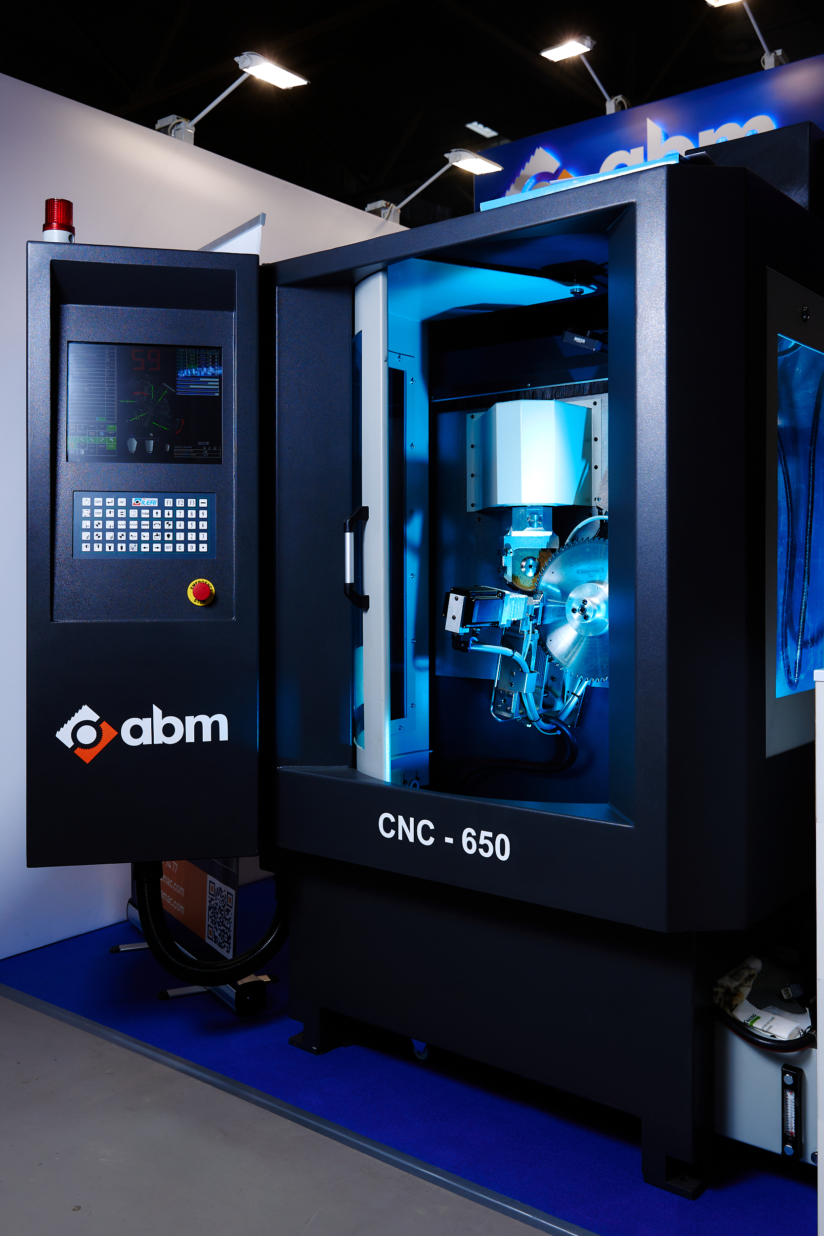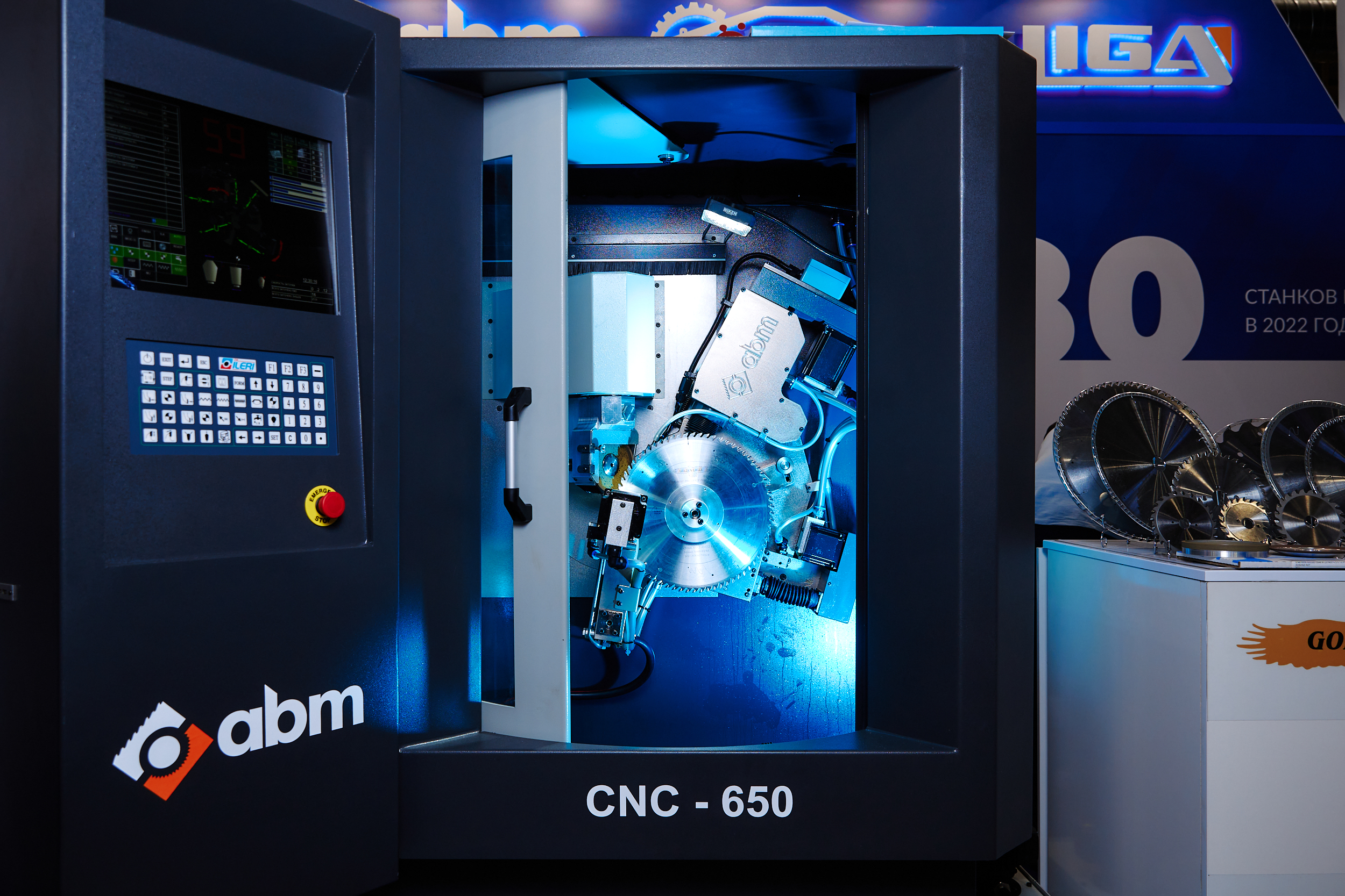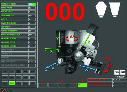 Станок СNC осуществляет заточку стандартных форм зубьев дисковых пил по передней и задней граням диаметром до Ø 650 мм. Управление происходит посредством числового программного управления (ЧПУ).
