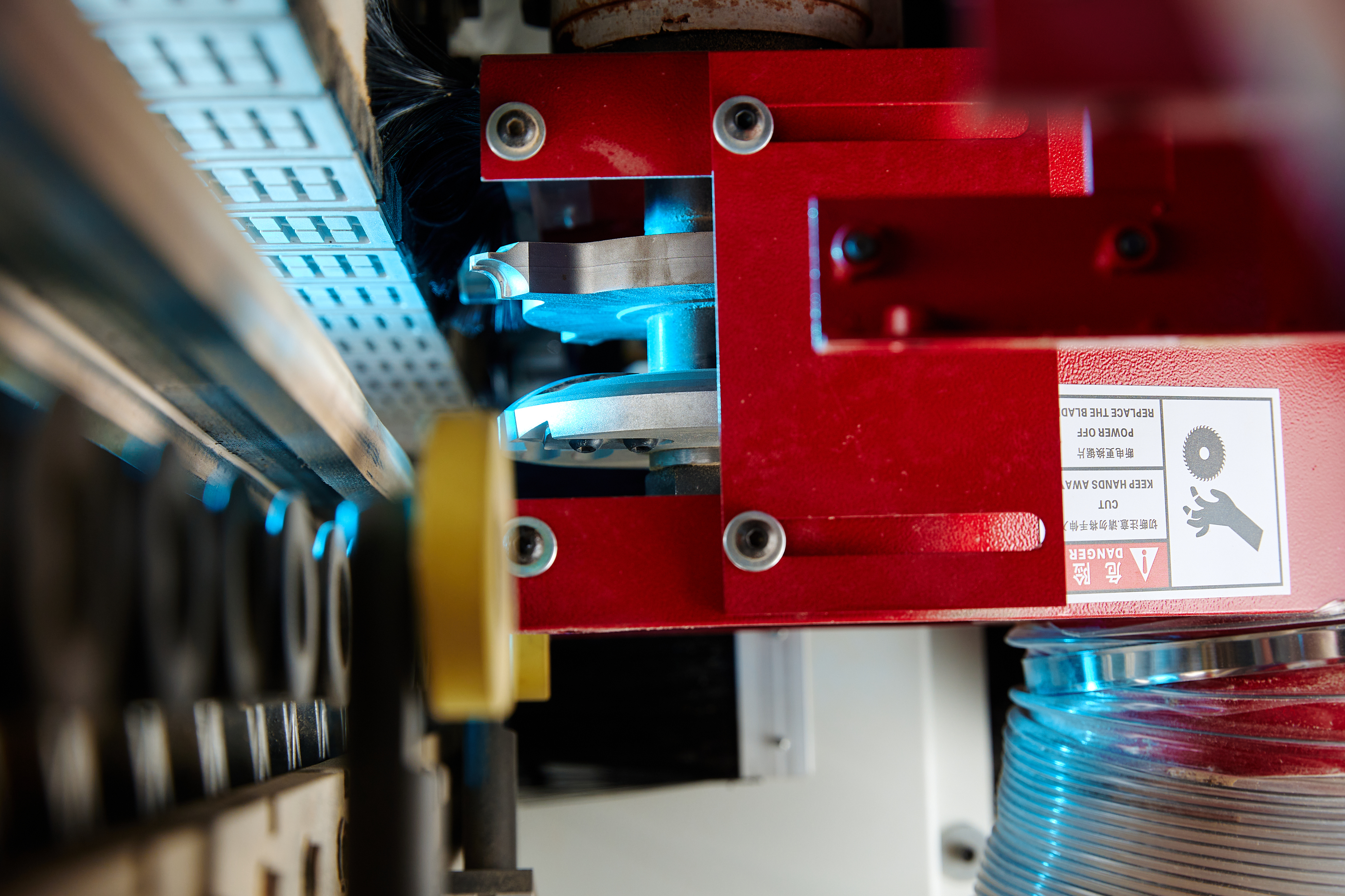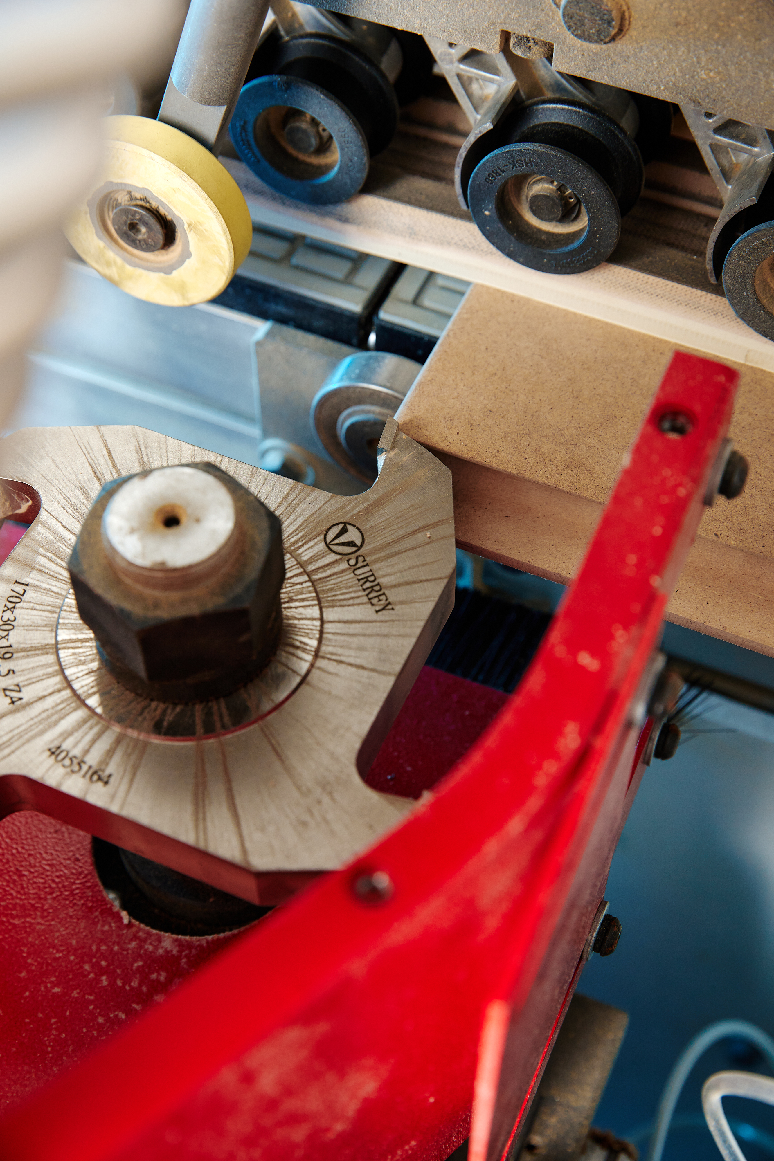 2 фрезерных агрегата, основной и дополнительный, формируют 2-х стороннюю кромку высокого качества. Возможна установка нескольких профильных фрез.